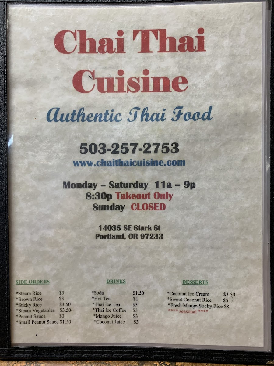 Each dish is thoughtfully crafted, balancing traditional Thai flavors with a touch of local flair. Whether you're new to Thai cuisine or a seasoned fan, the menu at Chai Thai promises an unforgettable dining experience that is both authentic and satisfying.
